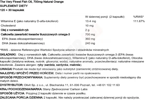 Carlson Labs The Very Finest Fish Oil Natural Orange 120 + 30 Softgels