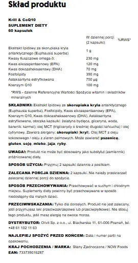 Data ważności 03.2026 Now Foods Krill & Coq10- Olej Z Kryla + Koenzym Q10- 60 Kapsułek
