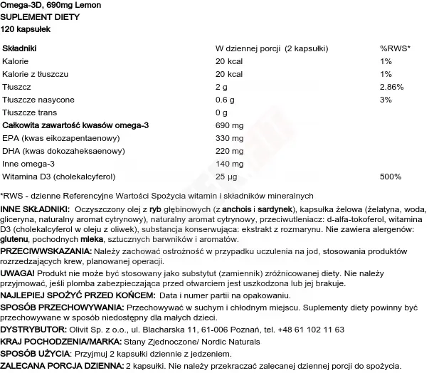 Data ważności 11.2025 Nordic Naturals Omega-3d Lemon Softgels 690 Mg 120 Caps