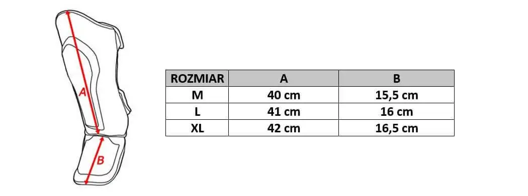 Wytrzymała konstrukcja doskonale amortyzują siłę kopnięć a anatomicznie wyprofilowane formy w połączeniu z systemami rzepów i taśm ściągających zapobiegają przesuwaniu się ochraniaczy podczas treningu.
