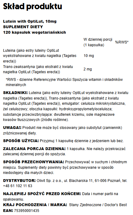 Doctor's Best Lutein from OptiLut 120 vcaps