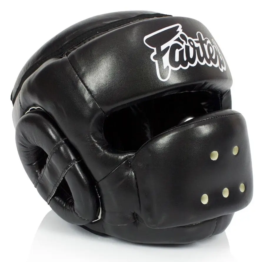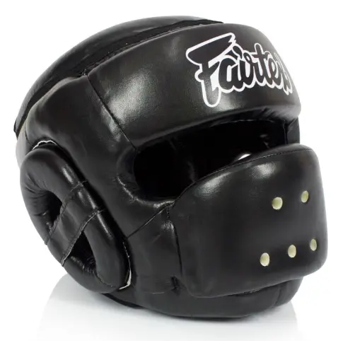 Kask Fairtex HG14 zapewnia pełną ochronę głowy. Front kasku jest wzmocniony wszytą metalową obręczą wyłapującą ciosy na twarz. Twój nos, usta, policzki i czoło będą bezpieczne. Podbródek oraz uszy mają dodatkową ochronę przed hakami oraz sierpami. Mimo, że kask jest mocno zabudowany pole widzenia wciąż pozostanie optymalne do prowadzenia treningu. Kask ten daje niezwykle duże poczucie bezpieczeństwa.