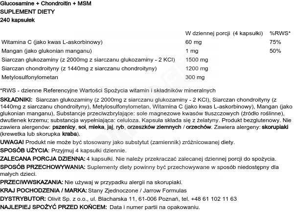 Jarrow Formulas Glucosamine + Chondroitin + Msm 240 Caps
