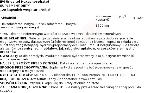 Jarrow Formulas - Ip6 (Heksafosforan Inozytolu)- 120 Kapsułek