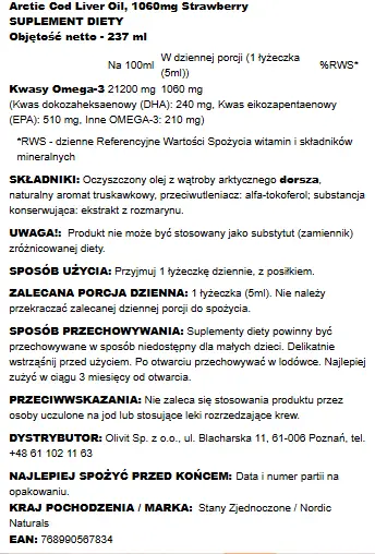Nordic Naturals Arctic Cod Liver Oil 1060mg Strawberry - 237 Ml