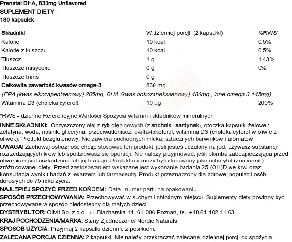 Nordic Naturals Prenatal Dha 830mg Unflavored - 180 Softgels