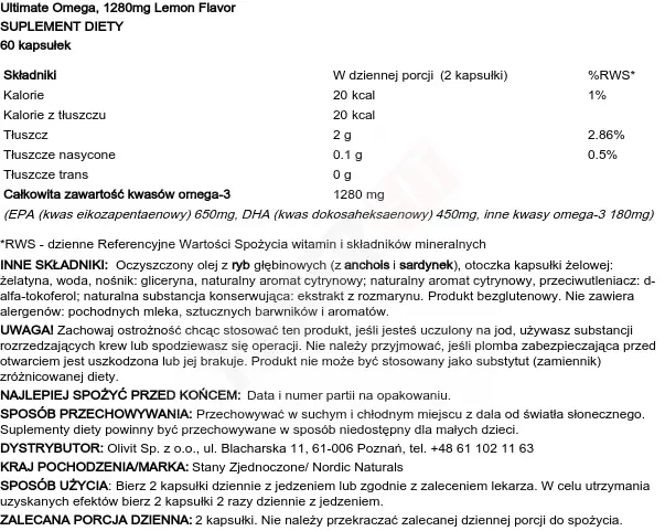 Nordic Naturals Ultimate Omega 1280mg Lemon 60softgels