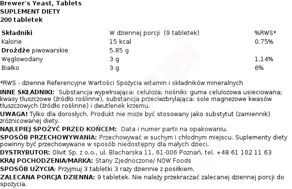 Now Foods - Brewer's Yeast 200 Tabletek