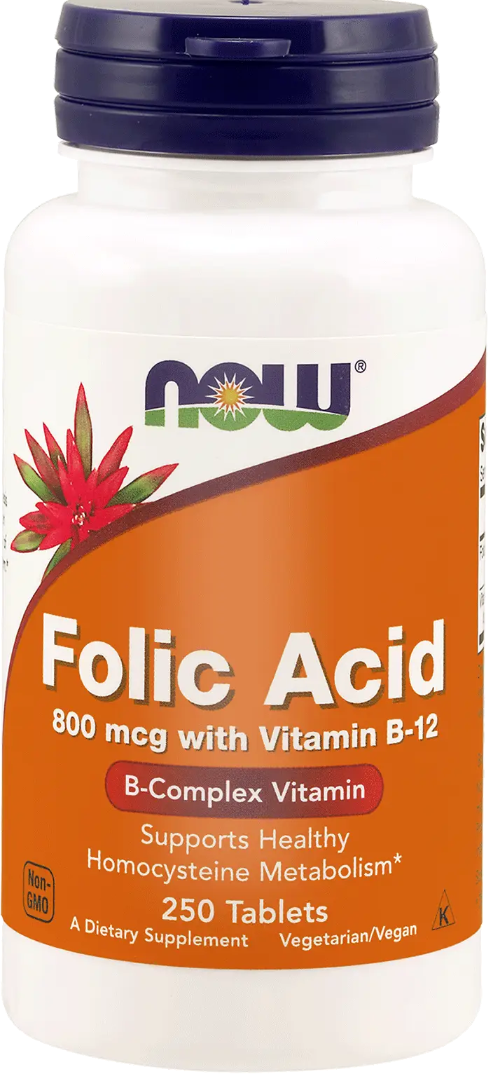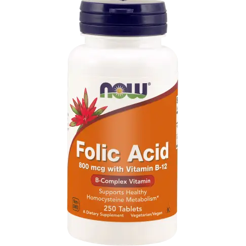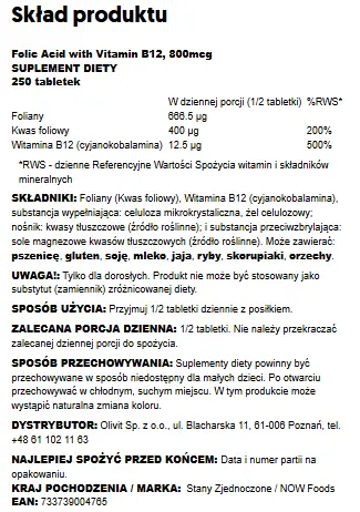 Now Foods Folic Acid - Kwas Foliowy + B12 - 800 Mcg - 250 Vcaps