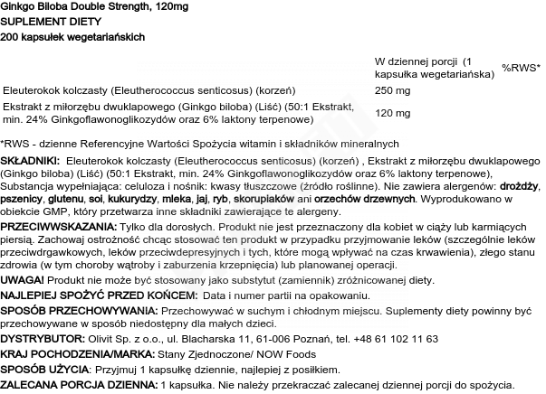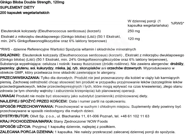 Now Foods Ginkgo Biloba Double Strength 120mg 200vcaps