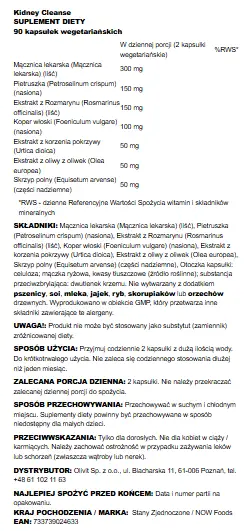 Now Foods Kidney Cleanse Oczyszczanie Nerek 90 Vcaps