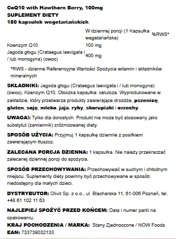 Now Foods Koenzym Q10 100 Mg + Głóg - 180 Vcaps