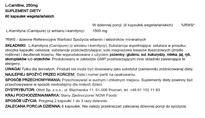 Now Foods L-Carnitine 250mg - 60 Vcaps