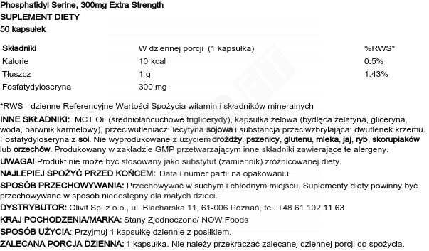 Now Foods -Phosphatidyl Serine - Fosfatydyloseryna 300mg 50 Kapsułek Miękkich