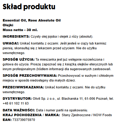 Now Foods Rose Absolute Oil Olej Rozany 30 Ml