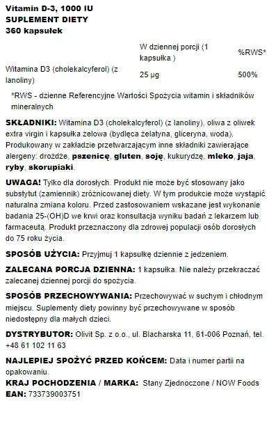 Now Foods Vitamin D-3 1000 IU 360 softgels