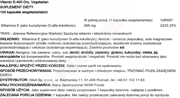 Now Foods Vitamin E-400 Dry Vegetarian 100 Vcaps