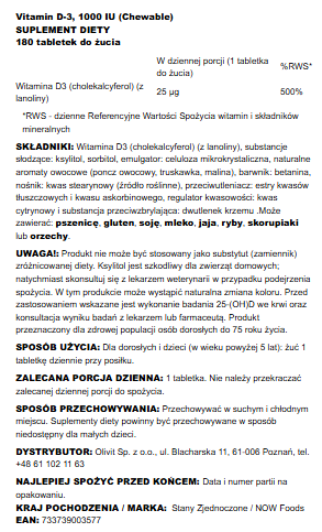 Now Foods Witamina D-3 - 1,000 Iu - 180 Żelek