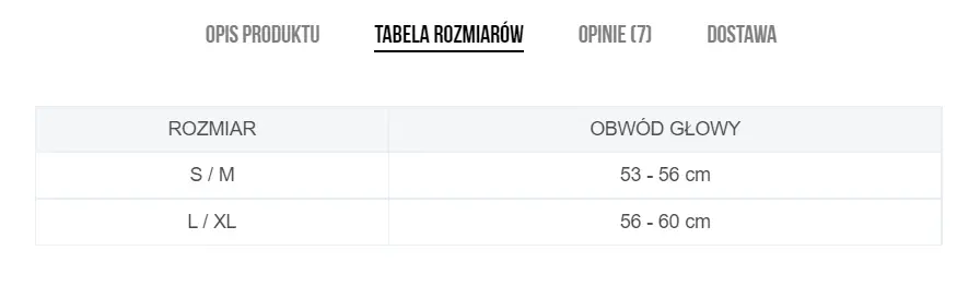Pasuje na obwód głowy w zakresie 55 – 60 cm