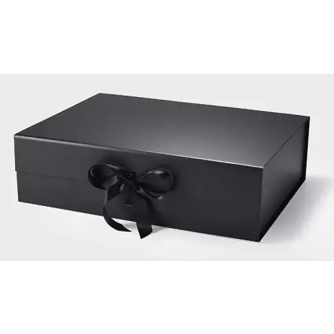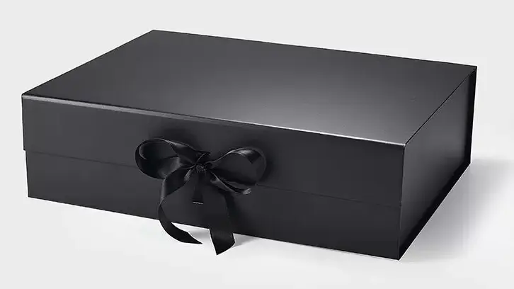 Czarne pudełko prezentowe z zamknięciem magnetycznym i wstążką – luksusowe opakowanie na prezent