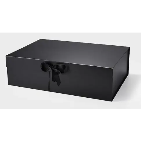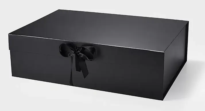 Czarne pudełko prezentowe z zamknięciem magnetycznym i wstążką – luksusowe opakowanie na prezent