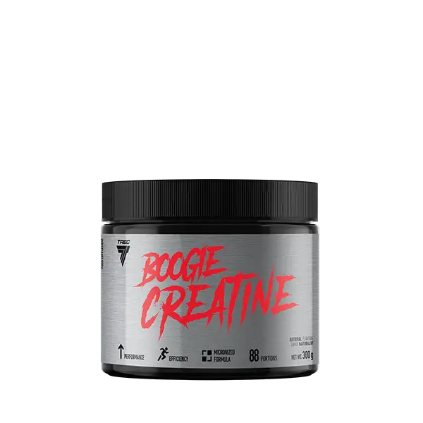 BOOGIE CREATINE NATURAL FLAVOUR zawiera kreatynę, która zwiększa wydolność fizyczną w przypadku następujących po sobie krótkich, bardzo intensywnych ćwiczeń fizycznych. Korzystny efekt występuje w przypadku spożywania 3 g kreatyny dziennie.