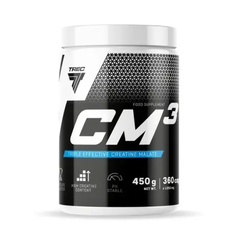 CM3 zawiera jabłczan trikreatyny. Jest to stabilna, odporna na kwaśne środowisko przewodu pokarmowego i bardzo dobrze rozpuszczalna forma kreatyny. CM3 zawiera kreatynę, która zwiększa wydolność fizyczną w przypadku następujących po sobie krótkich, bardzo intensywnych ćwiczeń fizycznych. Korzystny efekt występuje w przypadku spożywania 3 g kreatyny dziennie.