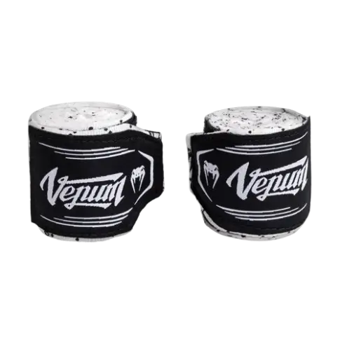 Wersja czarno-biała wyróżnia się powtarzającym się logo Venum naniesionym metodą sublimacji wzdłuż owijki oraz markową naszywką przy zapięciu.