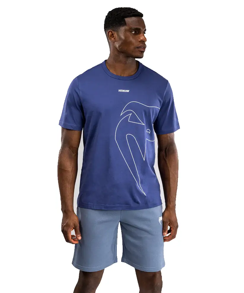 T-shirt Giant Connect w kolorze Royal Blue ma biały napis VENUM na środku klatki piersiowej, co stanowi dopełnienie tej wysokiej jakości bawełnianej koszuli.