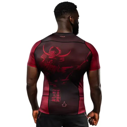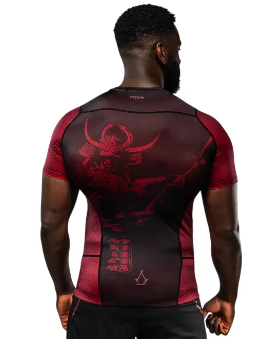 Męski rashguard z krótkim rękawem Venum x Assassin’s Creed: Shadows działa jak druga skóra, zapewniając zarówno ochronę przed urazami, jak i swobodę ruchów podczas walki w parterze.