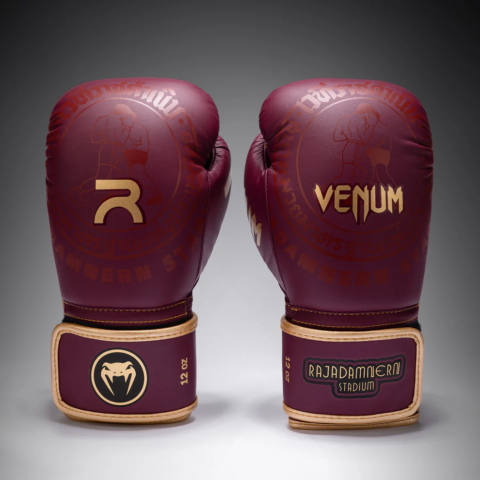 Rękawice bokserskie Venum x Rajadamnern to ten sam model, którego używają zawodnicy podczas turniejów Raja World Series.
